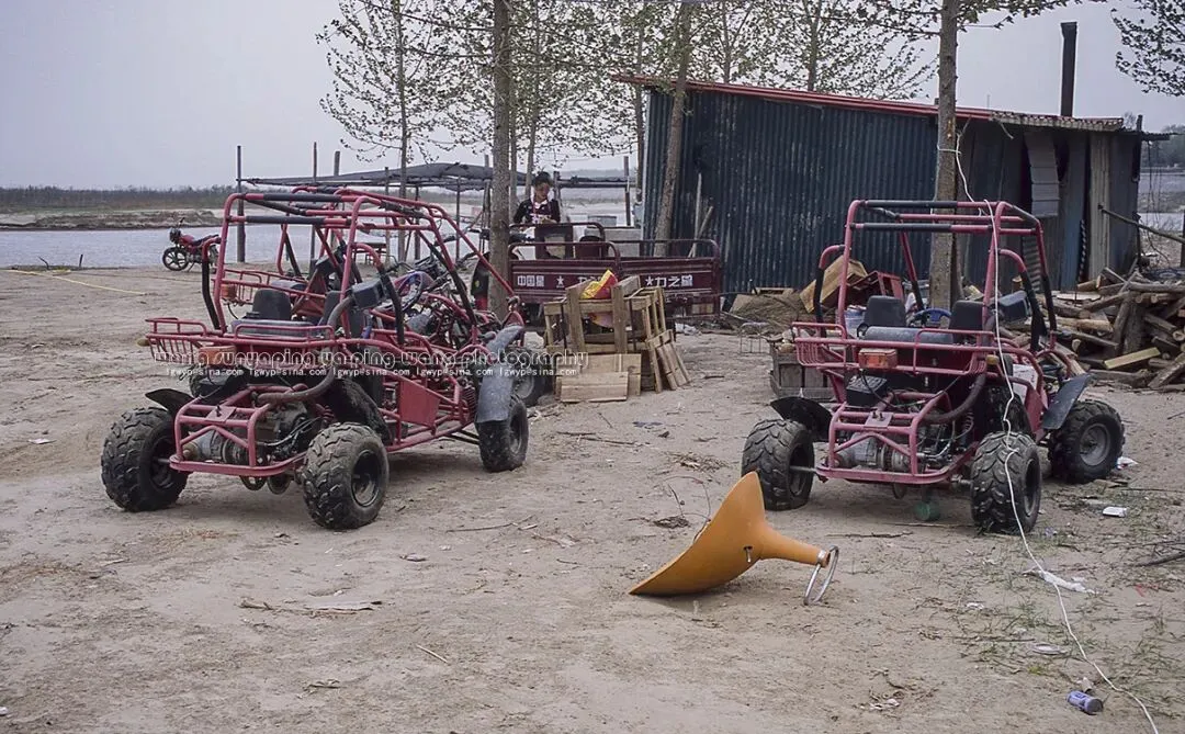 2016年4月2日,河南省郑州市惠济区花园口镇花园口村。黄河滩上狂风肆虐,渺无人踪。留守于此的老板看守着无人光顾的卡丁车。