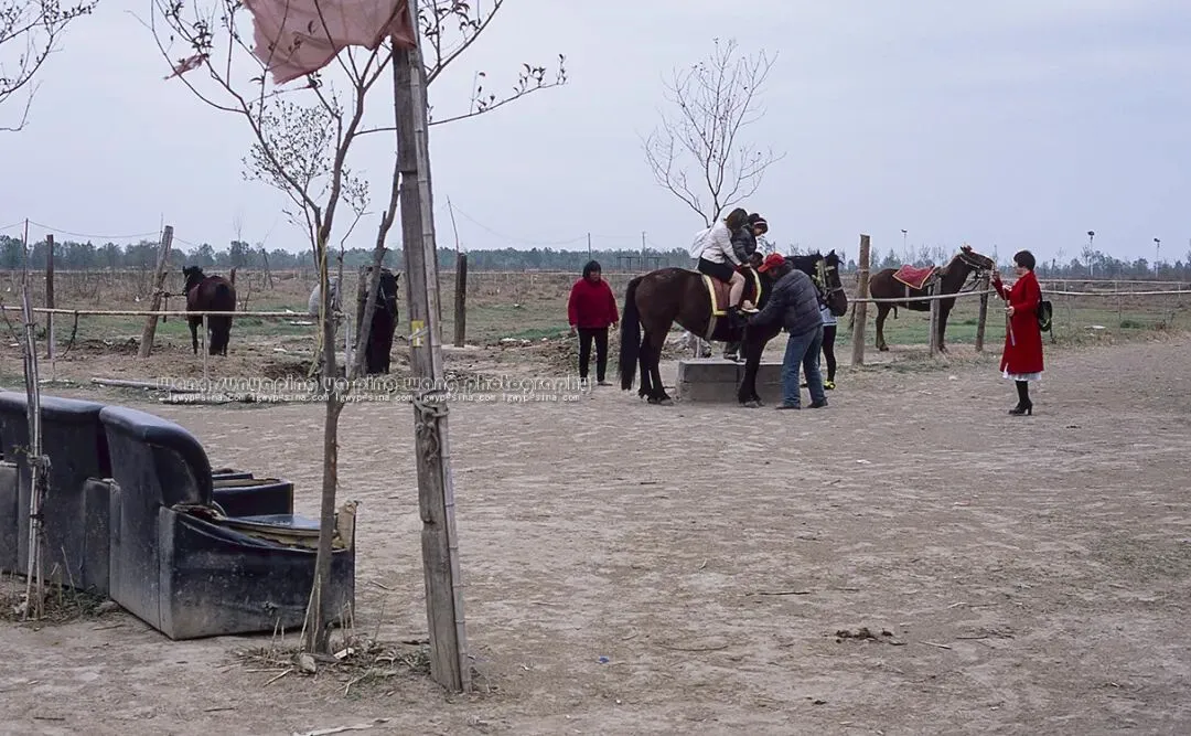 2016年4月3日,河南省郑州市惠济区花园口镇花园口村。早晨,因大风歇业一天的跑马场,迎来了第一拨踏青的游人。