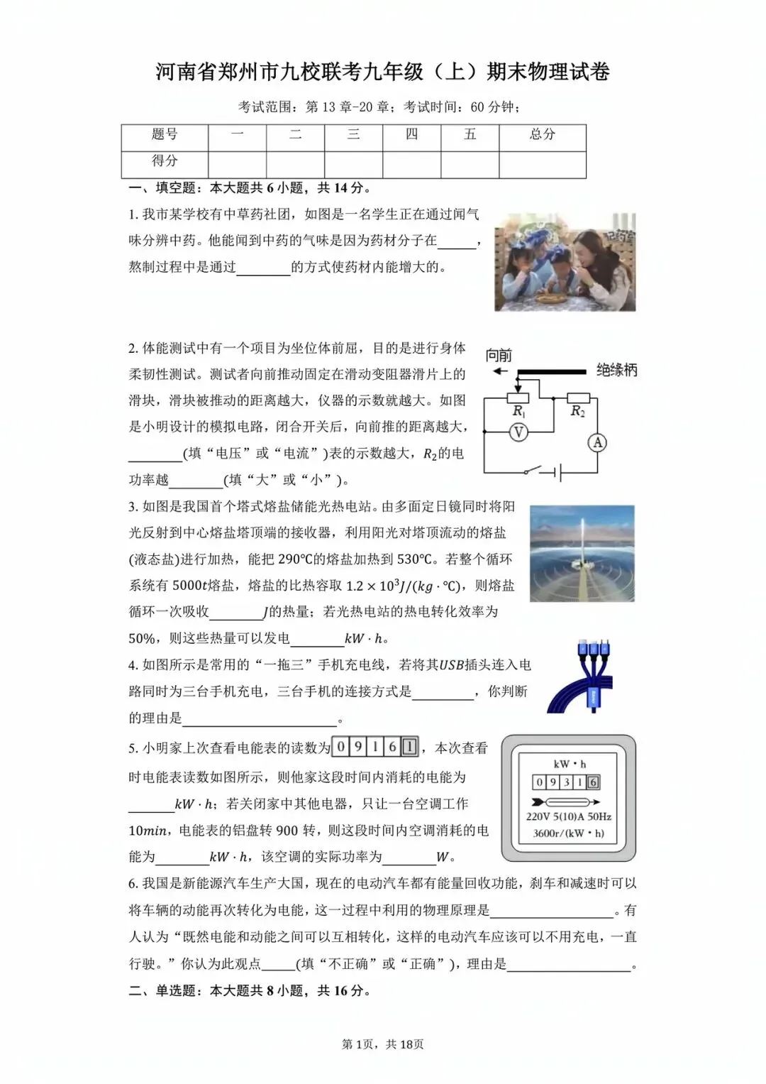郑州市九校联考九(上)物理期末试卷