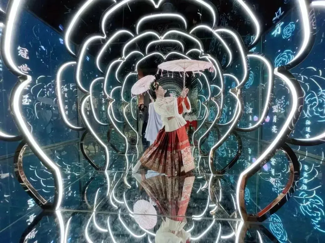 第二站:牡丹阁景区,以文献资料、历史文物、视频图片、趣味沉浸式项目体验等为载体,结合现代高科技手段,去了解牡丹的前世与今生。