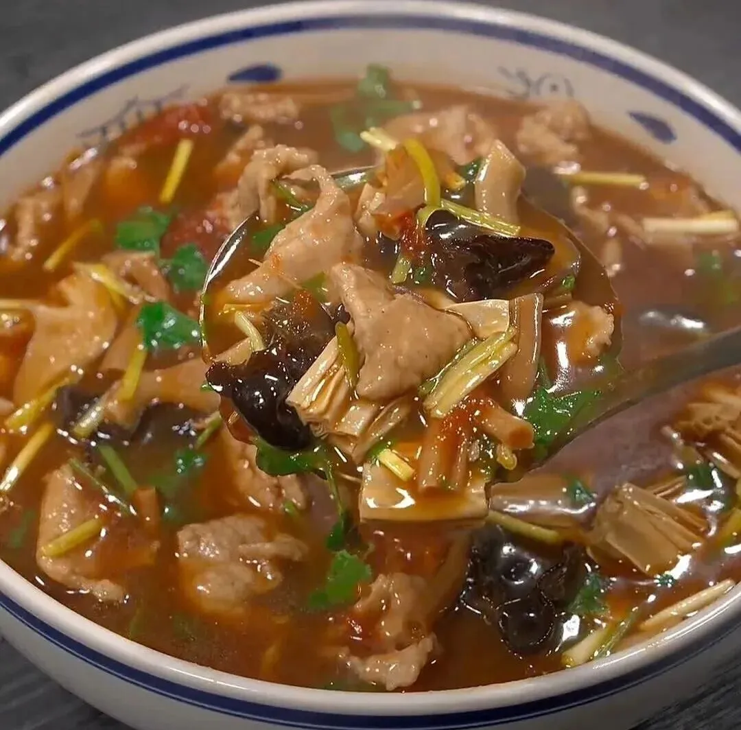 连汤肉片是河南洛阳水席中不可缺少的汉族特色名菜,洛阳人喜欢吃水席,几十道菜,汤汤水水下来,吃得人连呼过瘾。连汤肉片以精瘦肉为主料,木耳、金针、大绿豆等为辅料精心制作而成,肉片滑嫩,微酸利口。洛阳人普遍喜食的一种风味小吃。它是将豆浆置于适当的温度下,发酵变酸,然后放入锅内加热到80度左右,液面便有一种蘑菇状的浆汁。这时加入少许香油,反复搅拌,待滚沸,将面条下锅,最好是杂面条。搅拌面条使之呈糊状。然后,将调制好的盐、葱花、青豆、芹菜、韭菜、辣椒加入。果子油茶中的“果子”,洛阳话叫“壳泡”。将面团用擀杖擀成面饼,擀得很薄,几乎透明了,把两张这样的面饼摞在一起,用刀切成拇指大小的长方块,一入油锅,两边就马上鼓起,像一个个泡泡,这就是“果子”。吃一口酥脆的果子,喝一口香香的油茶,简直美味。