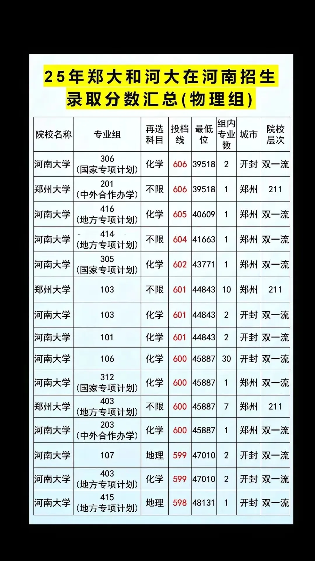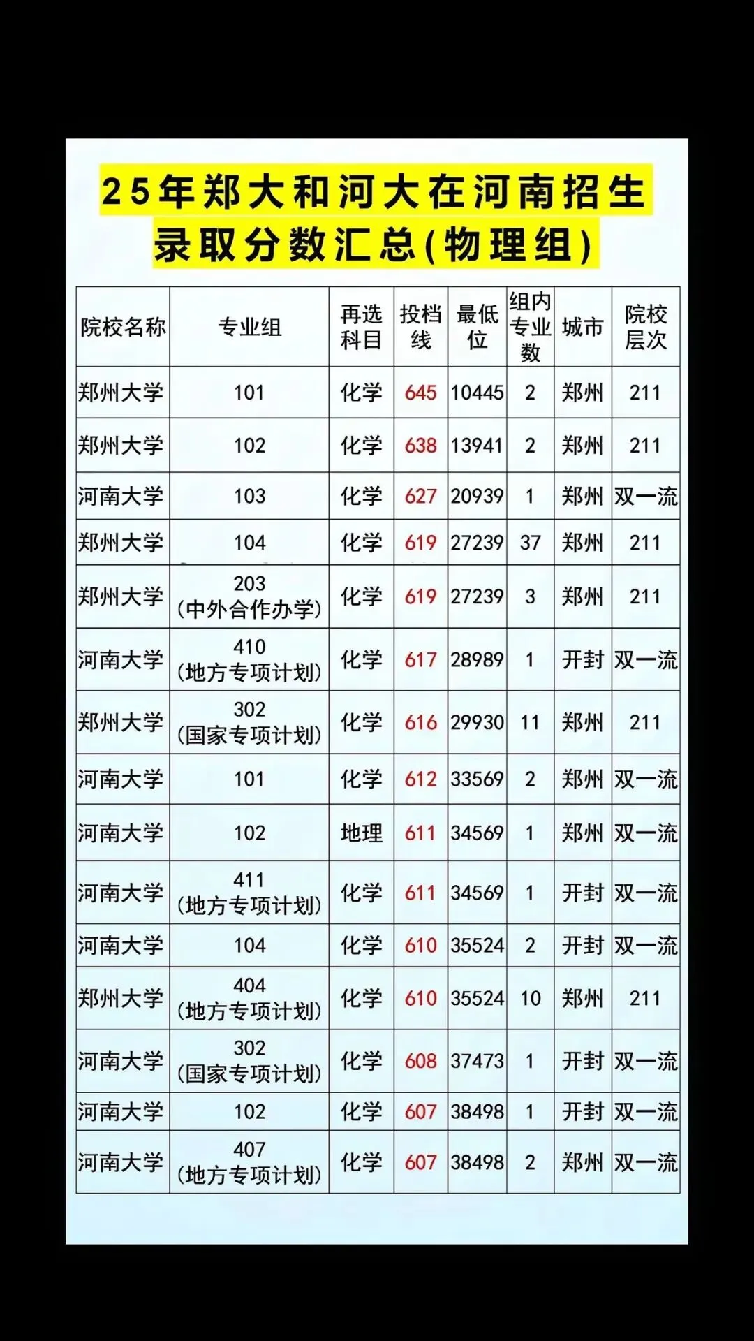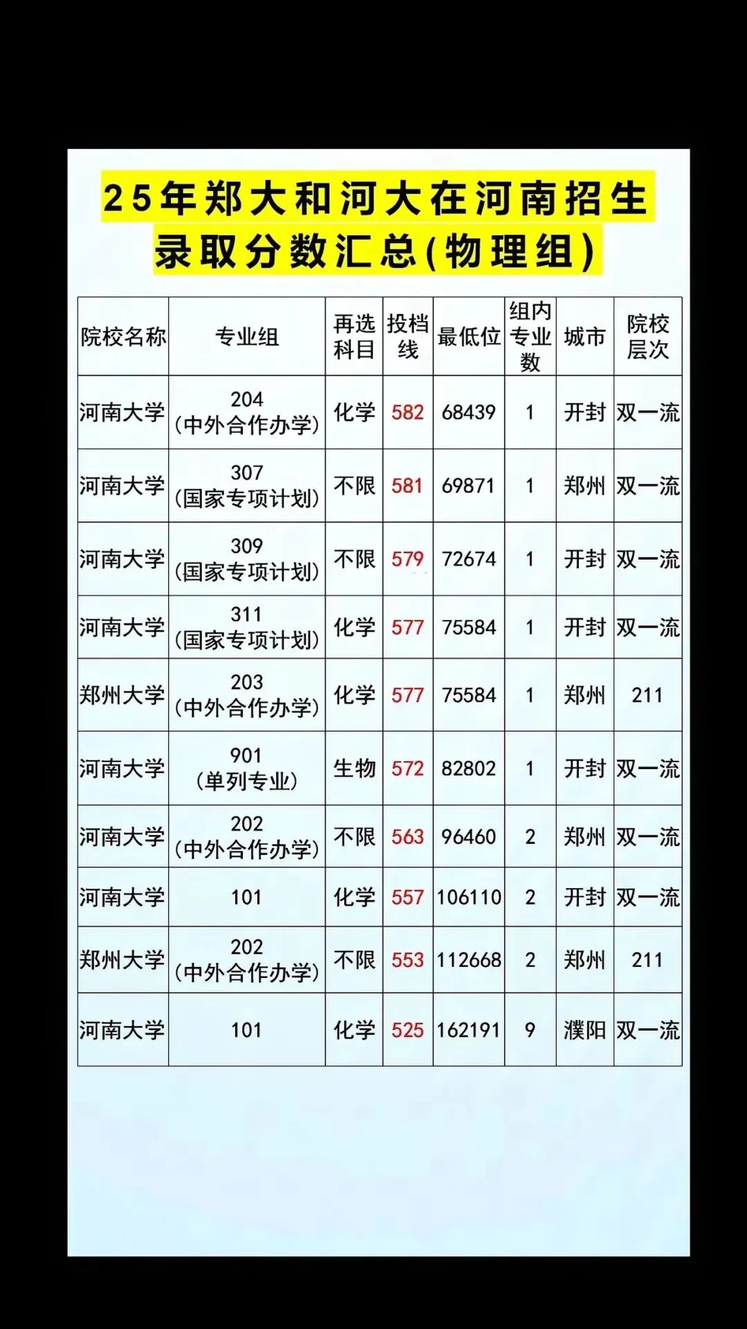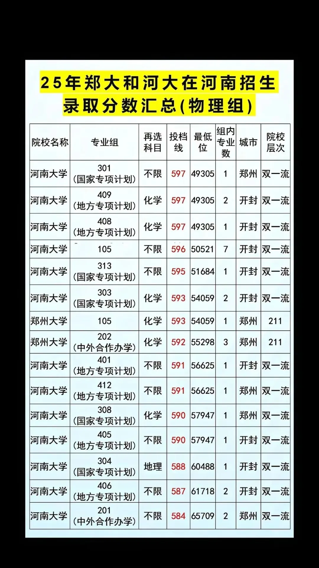 >2025年郑州大学、河南大学在河南招生分数(物理组)