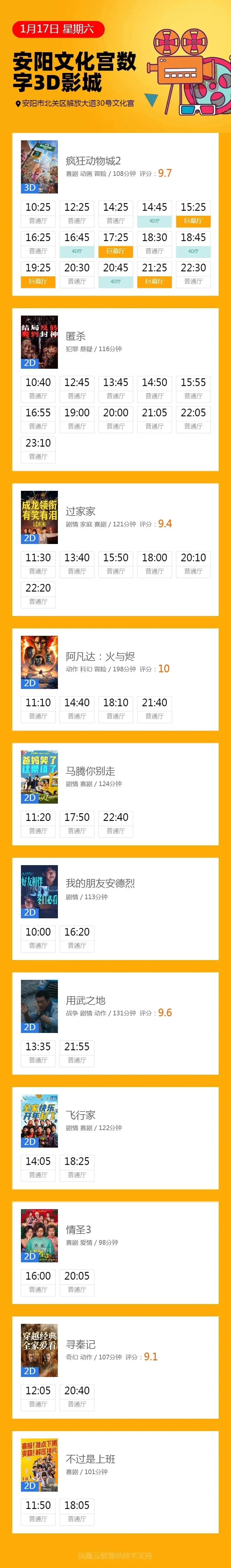 安阳市工人文化宫数字3D影城1月17日影讯