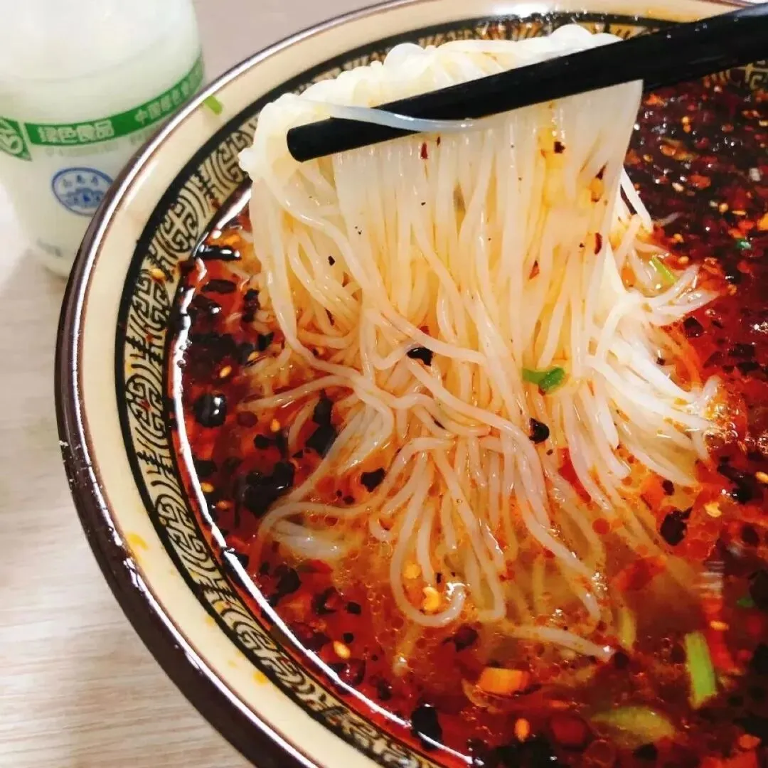 店门脸挺普通,玻璃门上贴着褪色的“欢庆米线”,没开门时卷闸门拉得严实,路过的人总忍不住扒着缝瞅;一开门,老板麻利的煮着米线,熟客问 “明天开不开门”,他也只含糊答 “看情况”,可没人怪他——毕竟赶上开门,嗦完一碗连汤都喝光,那满足感,够念叨好几天。