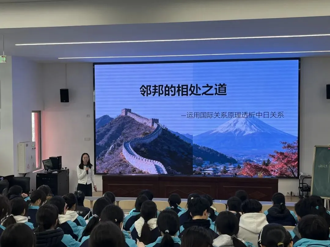 按照新课标要求,把新颖的时政热点素材融入政治课堂,采用议题式教学设计,让学生沉浸式体验例行记者会活动,让学生在热点情境中学习,既充分掌握必备知识,又能培育学科核心素养;讲练结合,让学生由学知识转向学会解决问题。