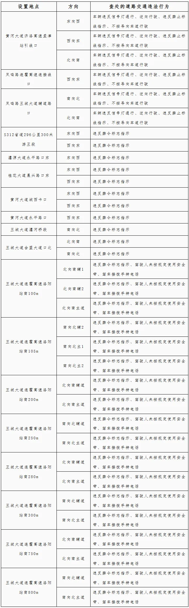 附:监控设备设置地点及查处的道路交通违法行为