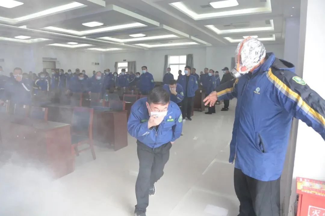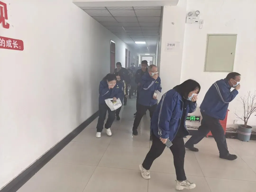 随着演练指令响起,模拟火灾应急疏散演练正式开始。现场迅速弥漫模拟烟雾,全体人员在疏散引导员的指挥下,严格运用所学技能,弯腰低姿、捂住口鼻,沿预定路线快速有序撤离。过程中,参演人员沉着冷静、配合默契,顺利完成全部疏散流程,安全抵达集合点。各部门负责人及时清点并上报人数,确保全员到位,有效检验了应急预案的可行性与人员的实战反应。
