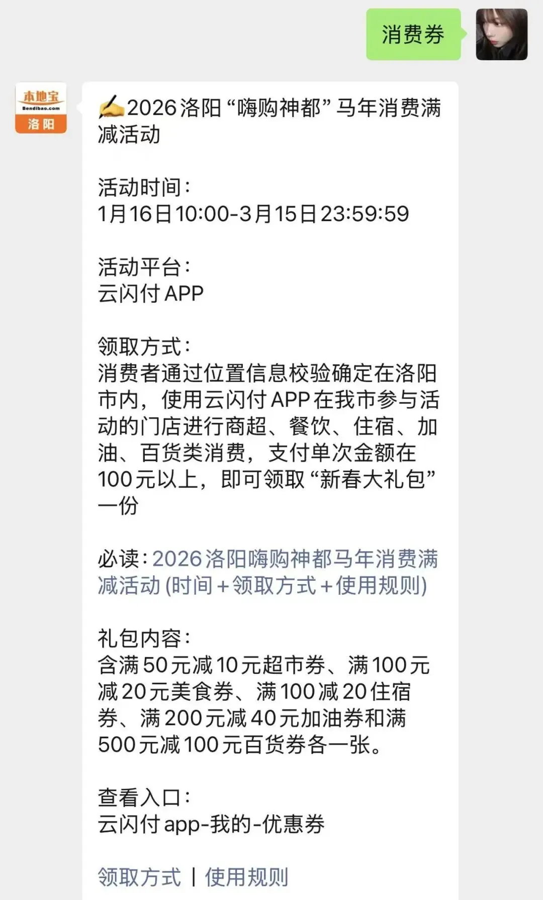 2.消费券可在洛阳市辖区内参与活动的任一商家核销使用,参与商家须支持发放平台付款方式。