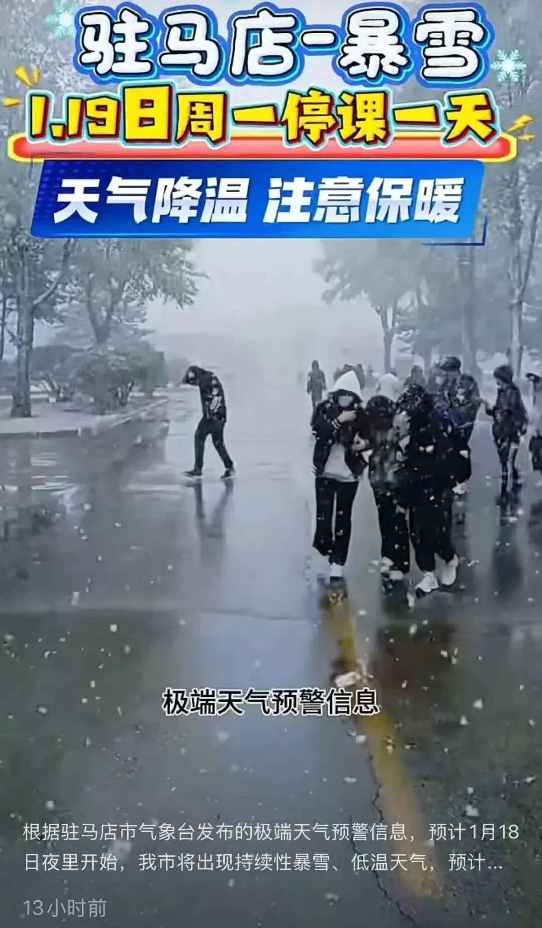 请您密切关注官方通知,同时我们也提醒各位家长,冰雪天气务必注意交通出行安全,做好防寒保暖。让我们共同为孩子们营造安全、安心的成长环境。再次感谢您的关注与支持!