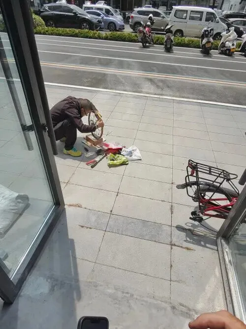 他在到达洛阳前,自行车辐条断了:
