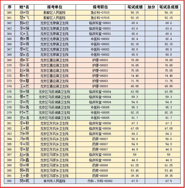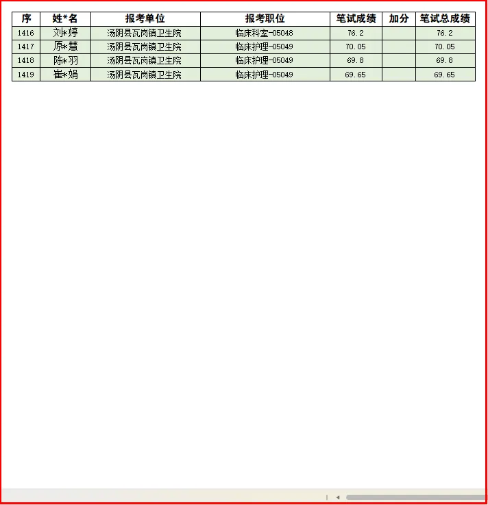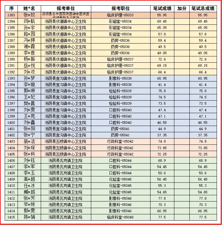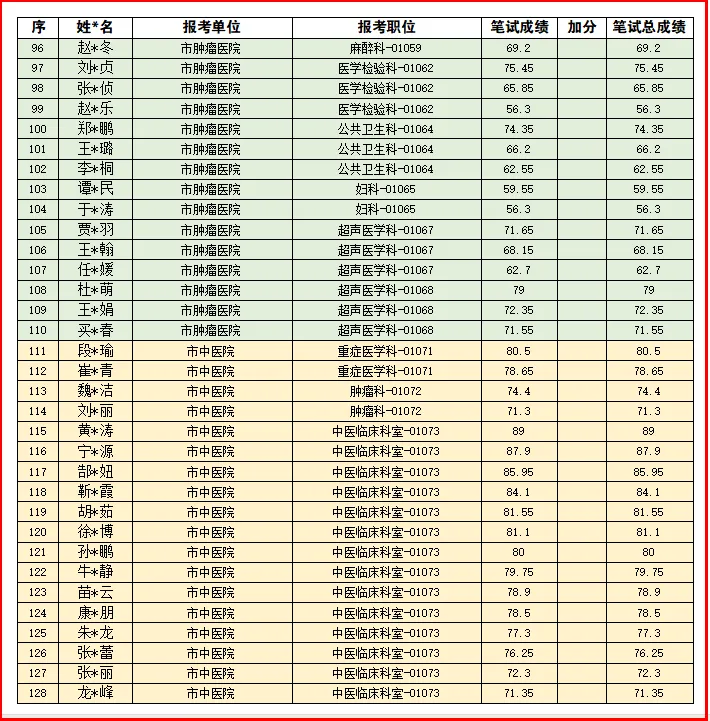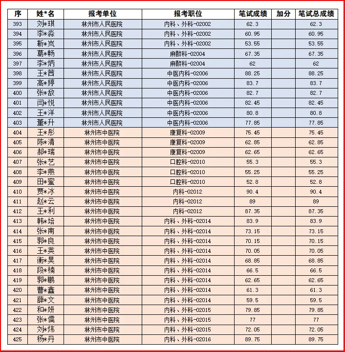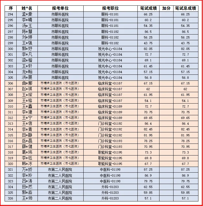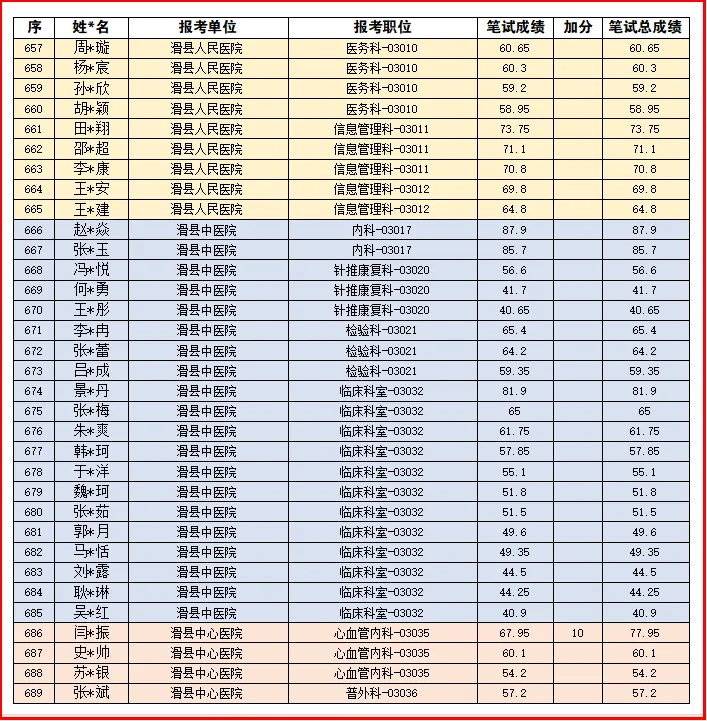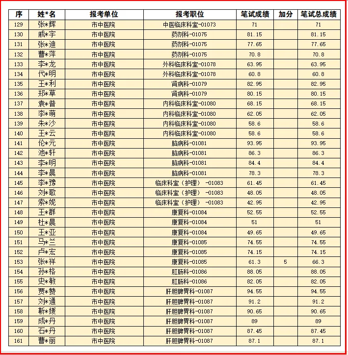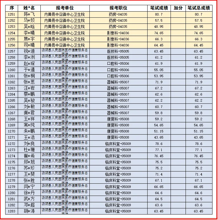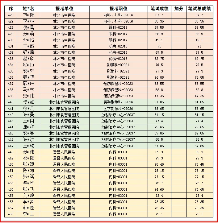 按照《2025年安阳市卫生事业单位公开招聘(引进)工作人员(第二批)简章》(以下简称《简章》)的有关规定,结合考生报名及笔试情况,经研究并报市人社局同意,决定在2025年安阳市卫生事业单位公开招聘(引进)工作人员(第二批)中核销不具备开考条件的市人民医院岗位代码01003等29个招聘岗位(详见附件1);对市人民医院岗位代码01005等79个急需短缺专业岗位(见附件2),保留原计划招聘人数,在确保竞争的前提下,降低开考比例进行面试;对市人民医院岗位代码01004等22个急需短缺专业岗位(见附件3),核减招聘人数后,在确保竞争的前提下,降低开考比例进行面试。根据报名、笔试及核销招聘岗位、核减招聘人数情况,拟确定报考市人民医院的吴腾啸等1531名考生进入面试(详见附件4、5)。
