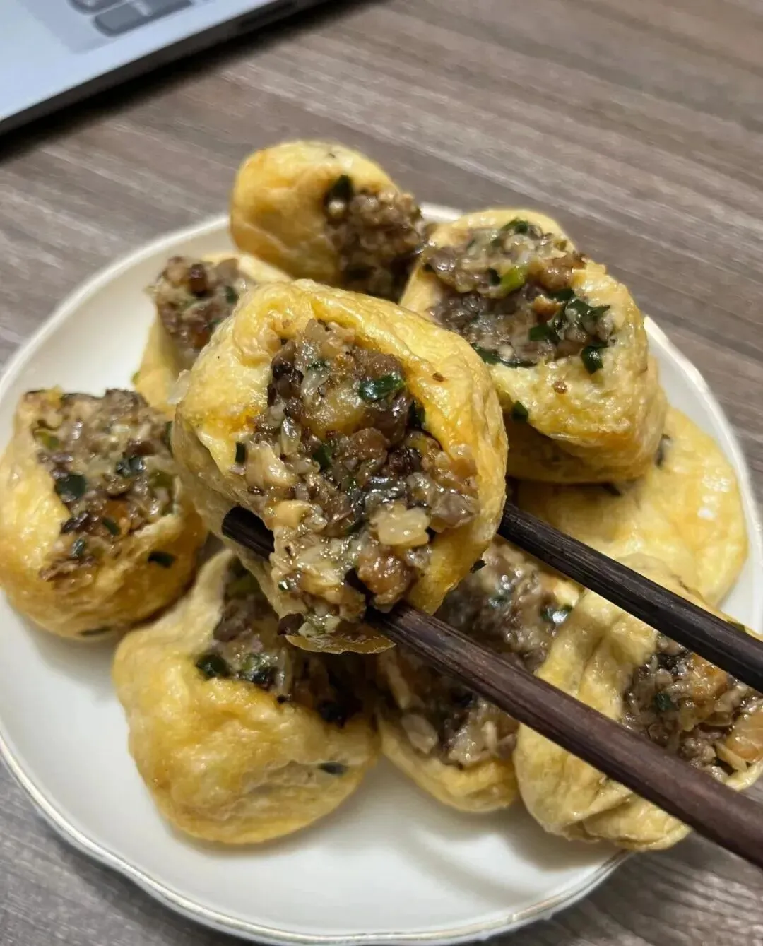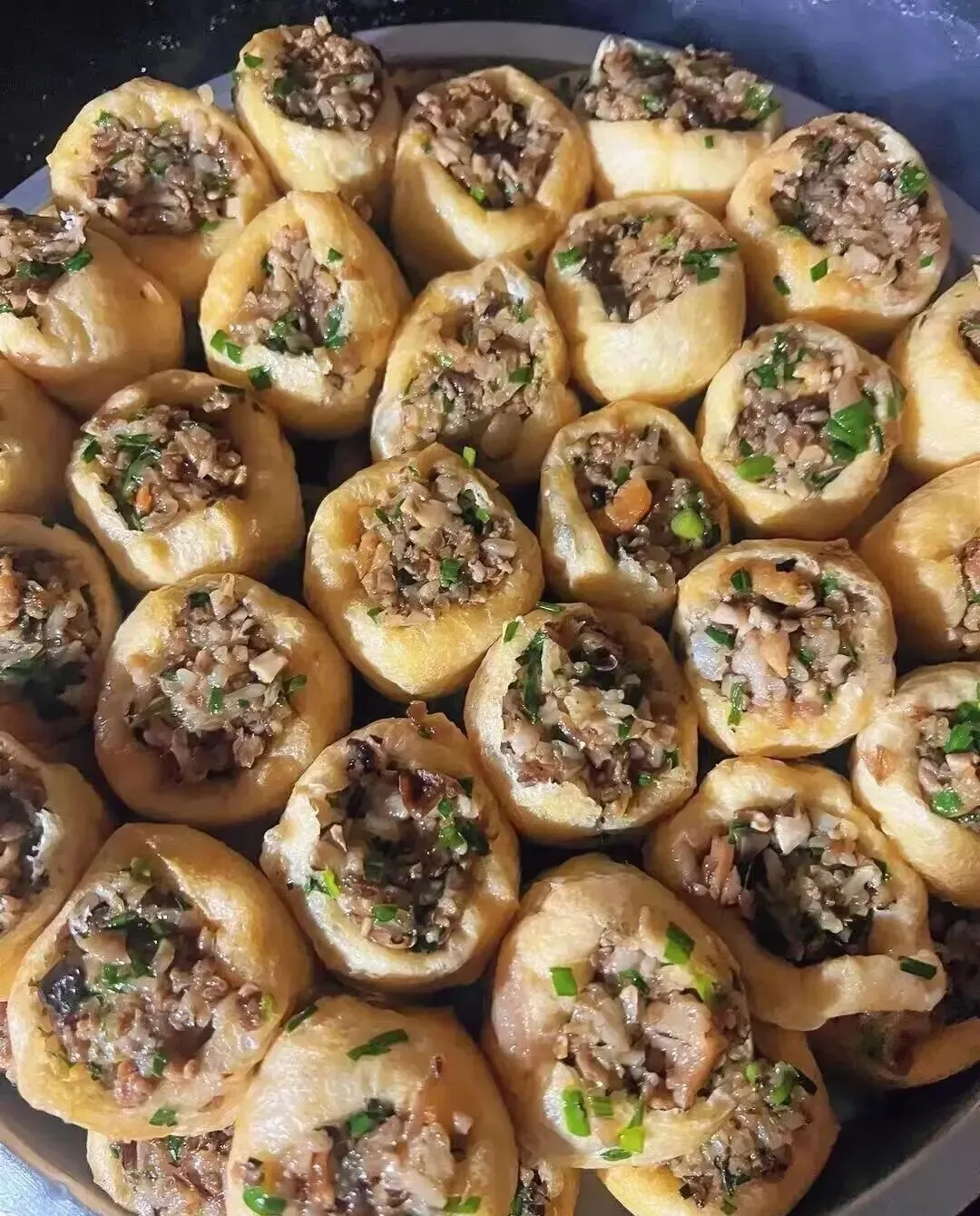 广西人应该都懂豆腐酿的含金量 , 外地朋友可能觉得就是个普通菜 , 但对我们来说 , 这就是从小吃到大的记忆。 我们那边还有加糯米的版本 , 咬一口又糯又香 , 配上酱油蘸着吃 , 真的绝了。
