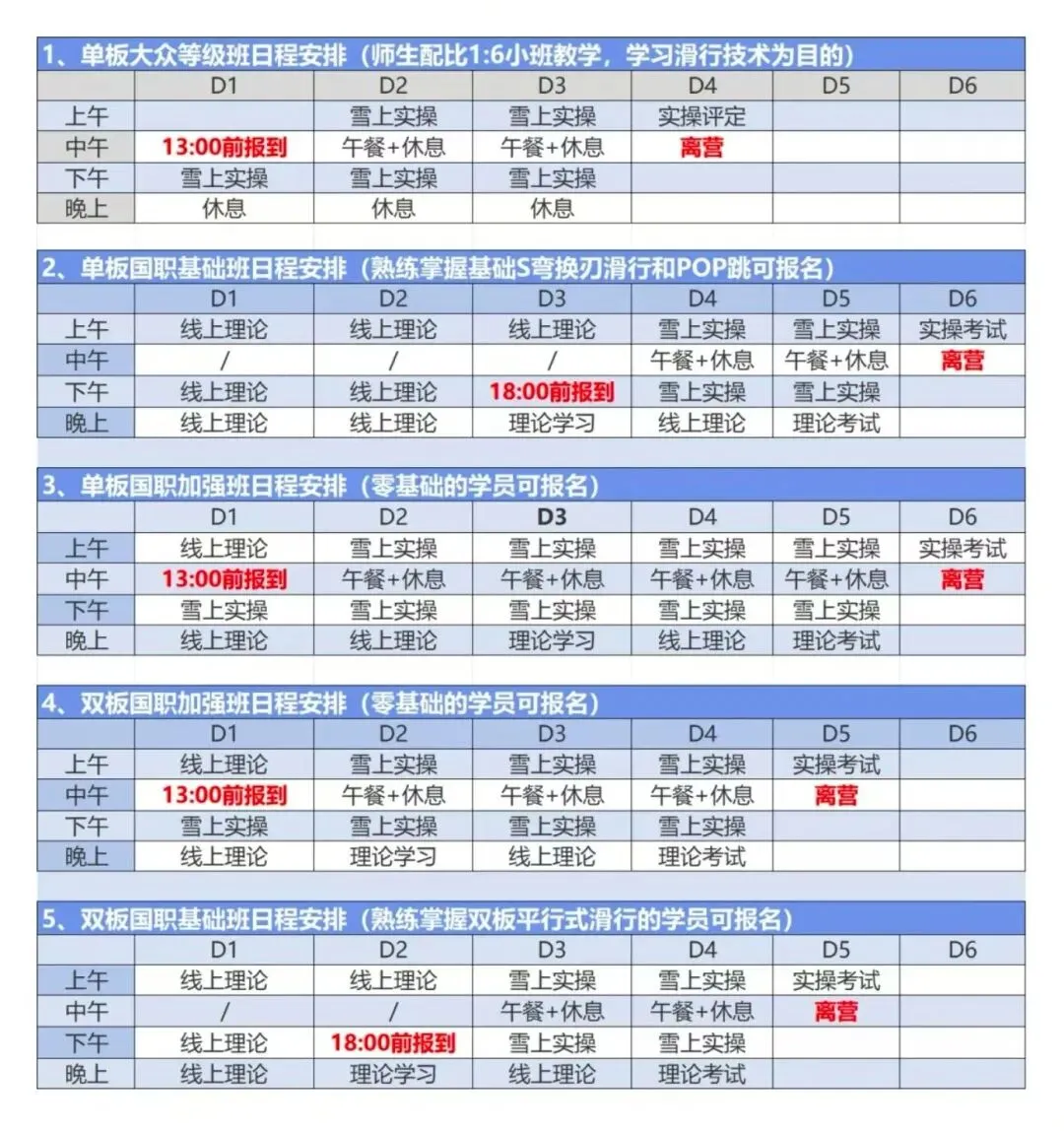 5、复训和补考的学员报名时需支付食宿费用和所涉及的雪票费用。
