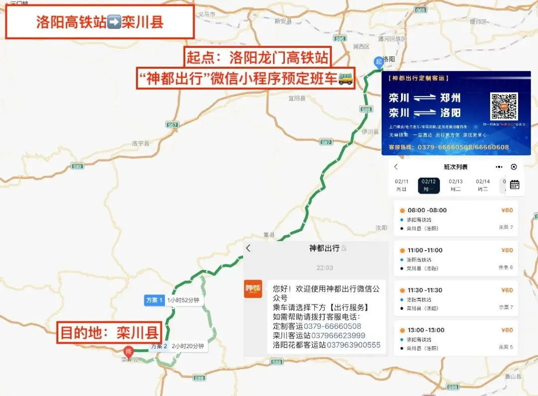 往期学员常见交通方式为,高铁抵洛阳龙门站,小程序预定班车🚌至栾川县,栾川县打车或拼车至雪场。具体见下图