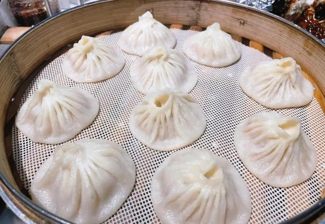 早上,得先来笼灌汤包。在鼓楼夜市边上那家"黄家老店",皮薄馅大,汤汁烫嘴。筷子一戳,油水就往外冒。包子不多,刚够醒神。
