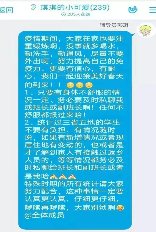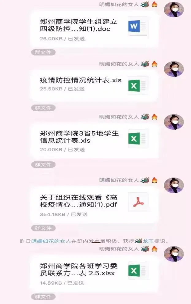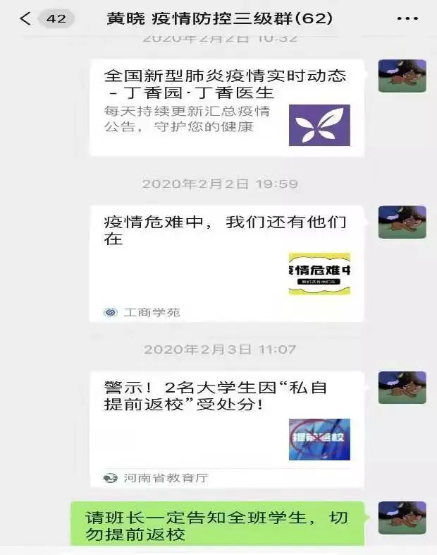 疫情之初,郑州商学院所有辅导员进入“战时”状态,从排查出全部湖北籍、返乡停留、人员接触、经停湖北学生信息开始,掌握所有学生寒假行程,强化“不流动”政策。每日进行全员健康报送,推送防疫小知识,不断落实落细各项工作。
