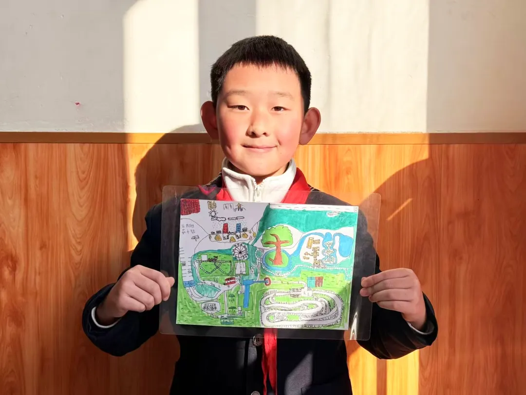 有一名同学将名字设计成游乐园创意地图,用多彩的场景承载名字,童趣满满,创意十足。