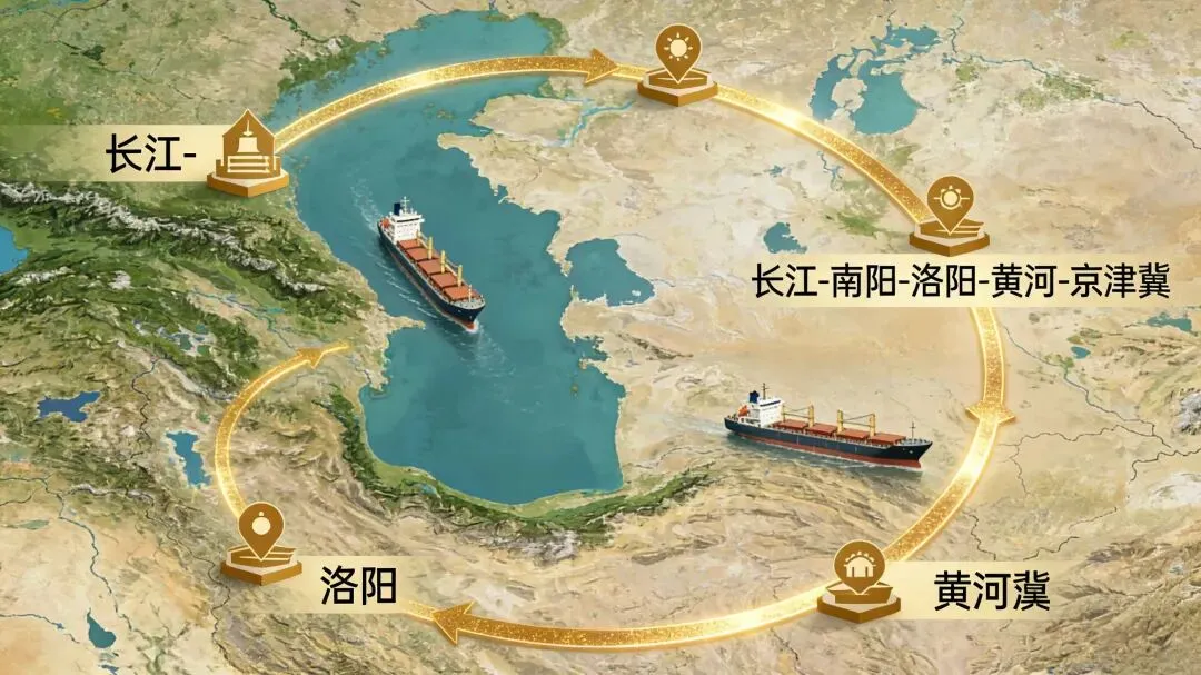 千年之后,当高等级航道工程启动,洛阳的运河基因再次被唤醒。若将伊洛河升级为二级乃至一级航道(二级航道水深≥2.6米、底宽≥60米,通航2000吨级;一级航道水深≥3.5米、底宽≥80米,通航3000吨级及以上),洛阳-南阳-省界全线约320公里航道(伊洛河120公里+唐沙运河40公里+唐河160公里),将串联黄河、淮河、长江三大水系。同时依托南水北调中线工程反向输水、引江济淮跨流域调水,长江水将沿着唐河—唐沙运河—沙颍河—贾鲁河—伊洛河的路径,年向黄河补水0.8亿立方米。这不仅是对隋唐大运河的传承,更是对古人“南北大通航”梦想的超越——昔日木帆船,如今已升级为新能源货轮;昔日人工漕运,如今已是智慧调度的高等级航道;更重要的是,断航千年的黄河,将因稳定的水量补给,重新具备通航能力。