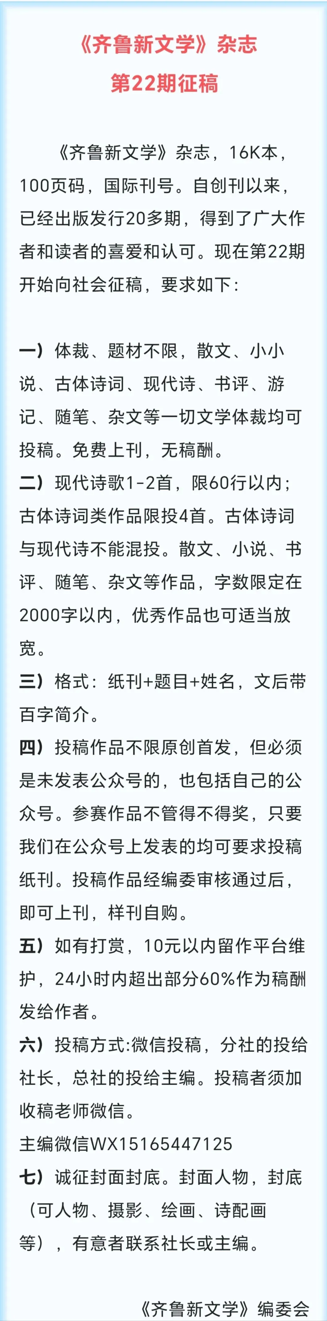 微信投稿,分社的投给社长,总社的投给主编。投稿者须加收稿老师微信。