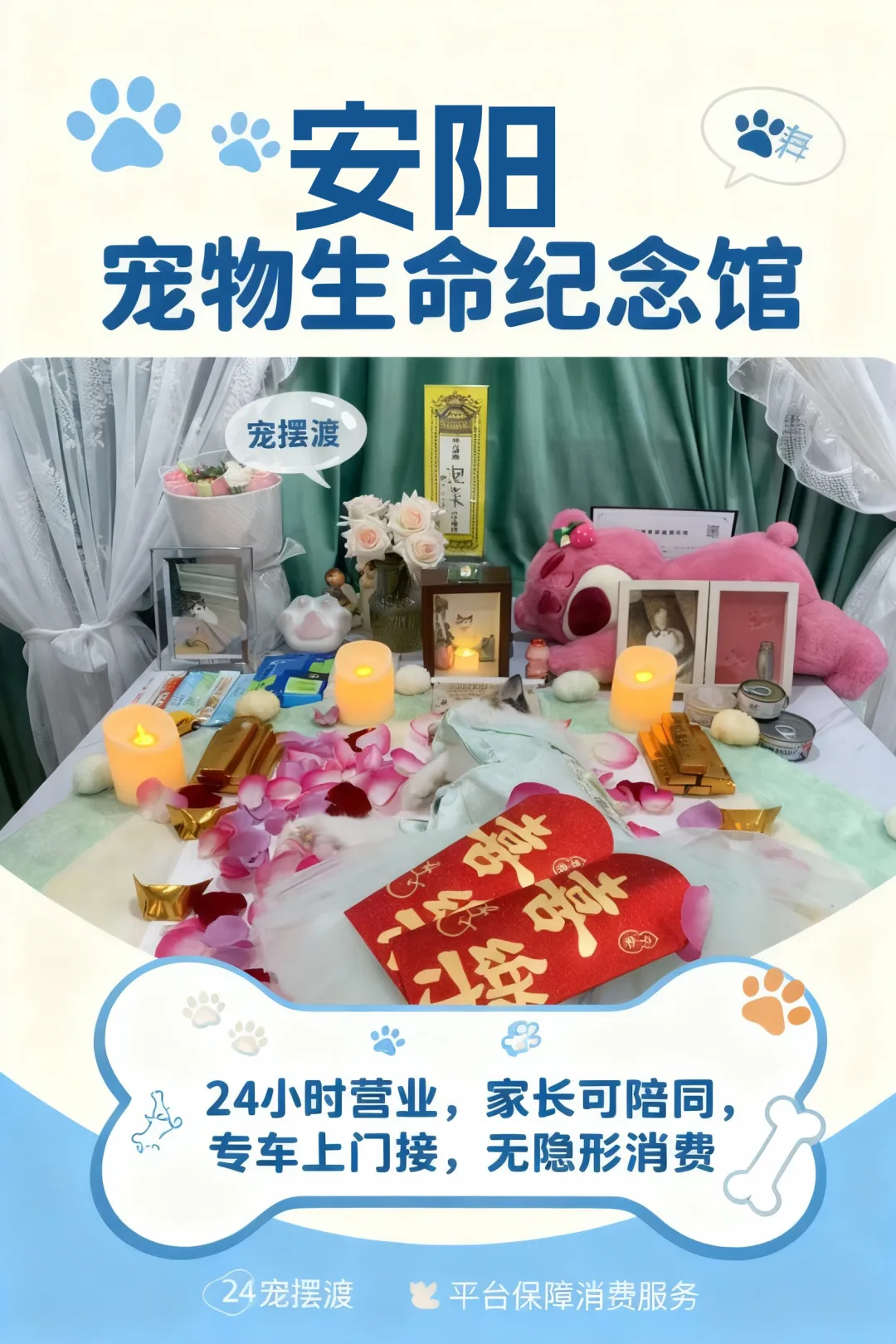 在安阳这座充满烟火气的城市里,每一只毛孩子都值得被温柔以待,每一段人宠情缘都值得被郑重铭记。宠物火化服务者们化身“时光摆渡人”,用专业守护体面,用温情抚慰伤痛,用细节留存回忆。那些陪伴我们走过一程的毛孩子,从未真正离开——它们的痕迹藏在爪印纪念牌里,留在随身佩戴的琉璃珠中,刻在我们心底最柔软的角落。