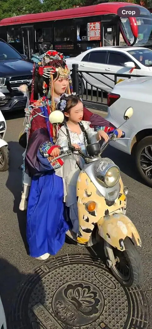 它可能被称为“汉服城”,因为街上有很多人穿着中国古代神话人物的服装进行角色扮演。这里弥漫着假日周末的氛围,有穿着汉服的母亲和女儿骑着电动自行车,穿着服装的学生摆着自拍,有男孩们扮演王子在大街上阔步前行,甚至还有男孩们打扮成公主。在入住位于繁忙的酒吧和咖啡馆“娱乐区”的旅舍后,我从街边小摊买了一份煎饼,然后坐下来观察周围的人。