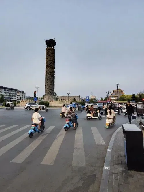 我本该在那时就往回走,但既然已经买了60岁以上优惠票,我还是挤进了通往石窟的河滨公路上拥挤的人潮中。接着,我忍着肩并肩地沿着公路挪动了一公里,什么也看不见。我甚至没有尝试加入被栅栏隔开的人群,排队上楼近距离观看石窟岩画。别无选择,只能“随波逐流”,直到我们到达一座横跨河流的桥,桥的另一边是通往对岸的返程路。一个小时后,我终于从人潮中挤了出来,从一堆停放的电动自行车中取回了我的自行车,回到了大行店(Dahon)