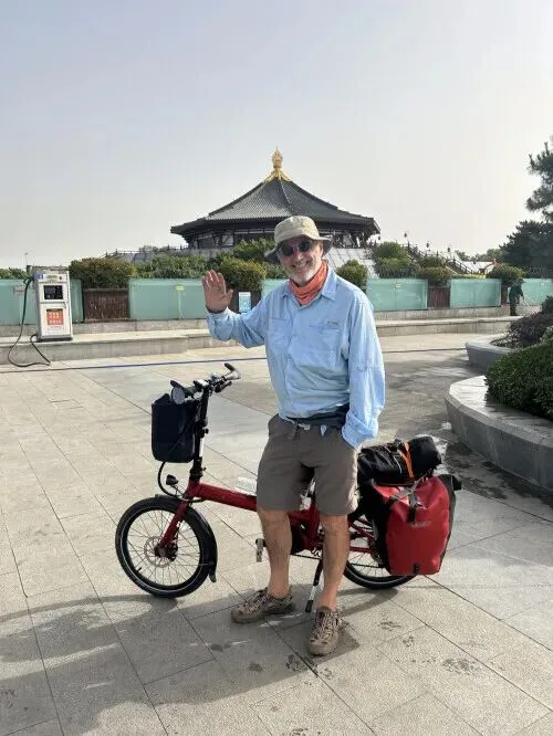 “第二天早上,我在地图上找到了一家大行(Dahon)自行车经销店,把我的自行车骑到那里,看看他们能否修好损坏的辐条。我向南骑了八公里,来到城市南边,却失望地发现这家店已经关门,正在装修。店里有工作人员,一位女士看到我的自行车后走了出来。她解释说自己是店主,店将在长周末期间关门,进行翻修。但当我告诉她我的辐条坏了,以及我计划沿着黄河进行长途骑行时,她让我上午晚些时候再把自行车带回来,因为那时自行车修理工——会在店里,可以帮我看看。