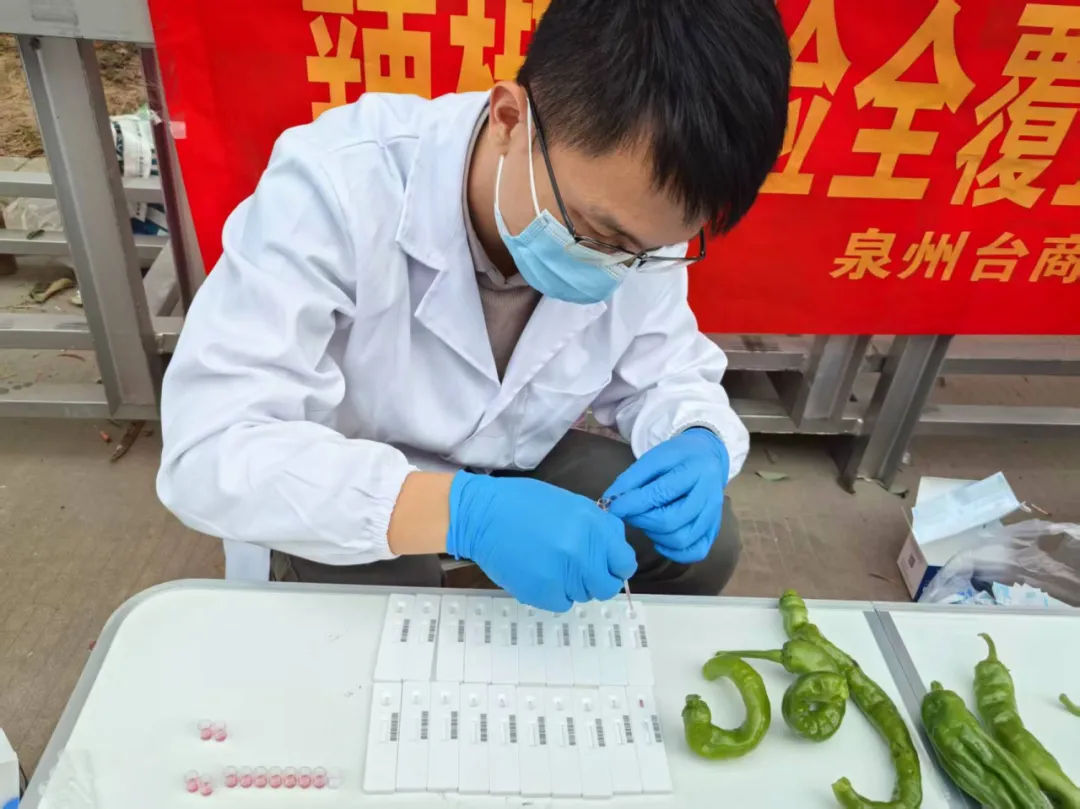 为深入落实《泉州市2025年驻点农药残留胶体金免疫快检实施方案》要求,强化重点问题食用农产品质量监管,压实生产经营主体责任。1月15日,泉州市农业农村局委托的第三方检测机构赴洛阳镇重点农产品主要产区驻点开展胶体金速测筛查。