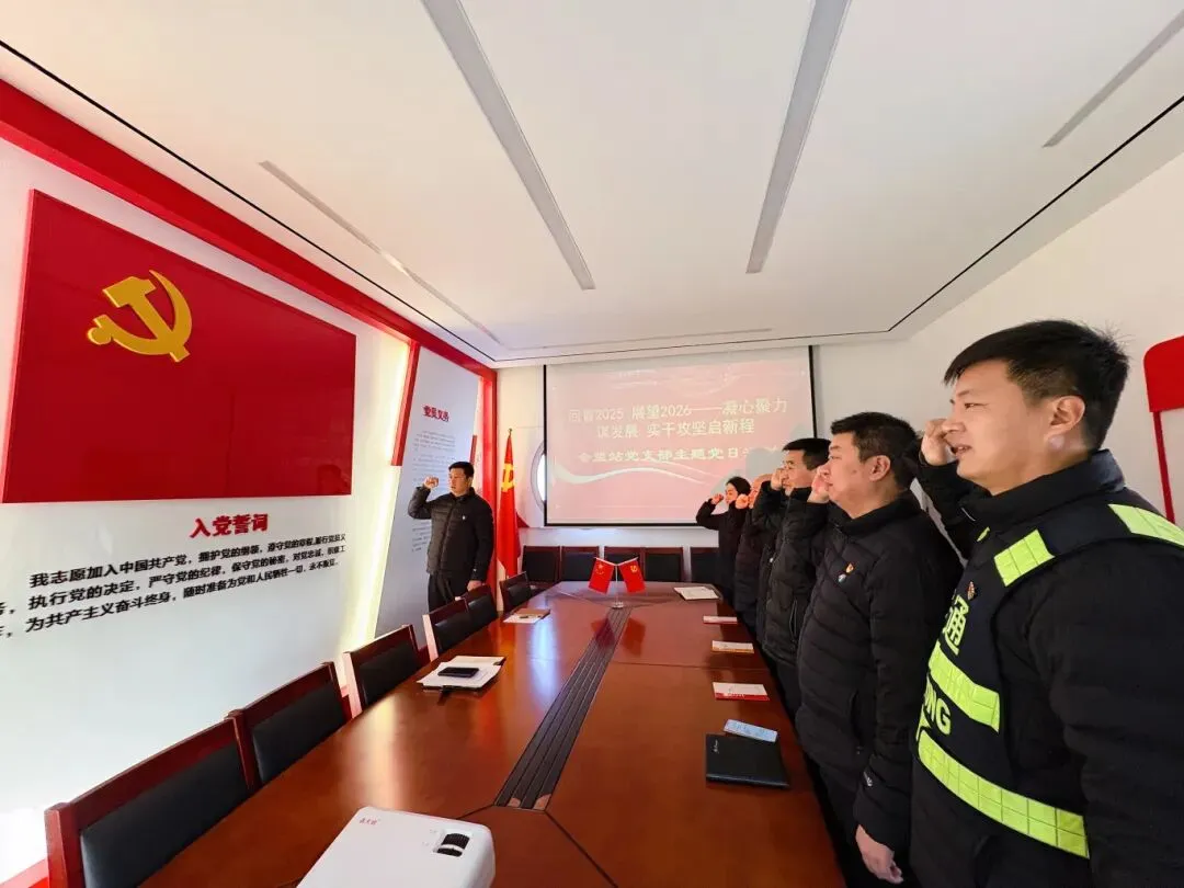 开展“回首2025 展望2026”主题党日活动,通过重温入党誓词、学习重要文件、签订廉政承诺书等强化理论武装,部署一季度党建重点工作,揭榜挂帅小分队开展安全巡查与便民服务。