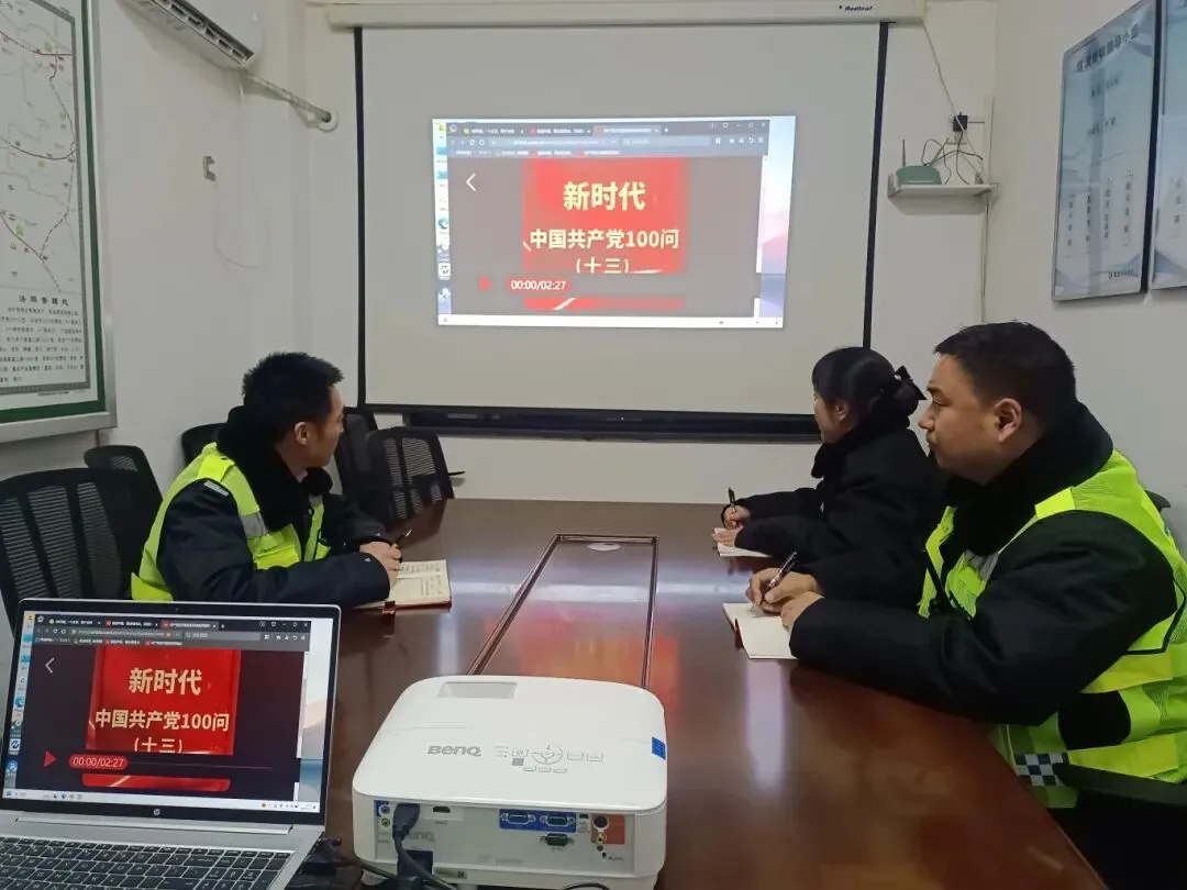 学习新年贺词,成立党员排查专班,开展收费设备、消防安全等隐患排查,设立便民服务点,筑牢春运安全防线。