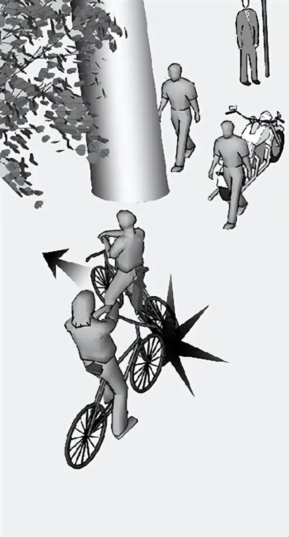 他回头看去,一个老太太连自行车带人倒在距离他5米左右的地方,老太太已经坐在地上,而且在痛苦呻吟。