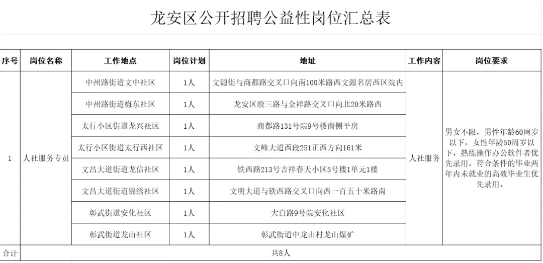 附件:龙安区公开招聘公益性岗位汇总表.xlsx