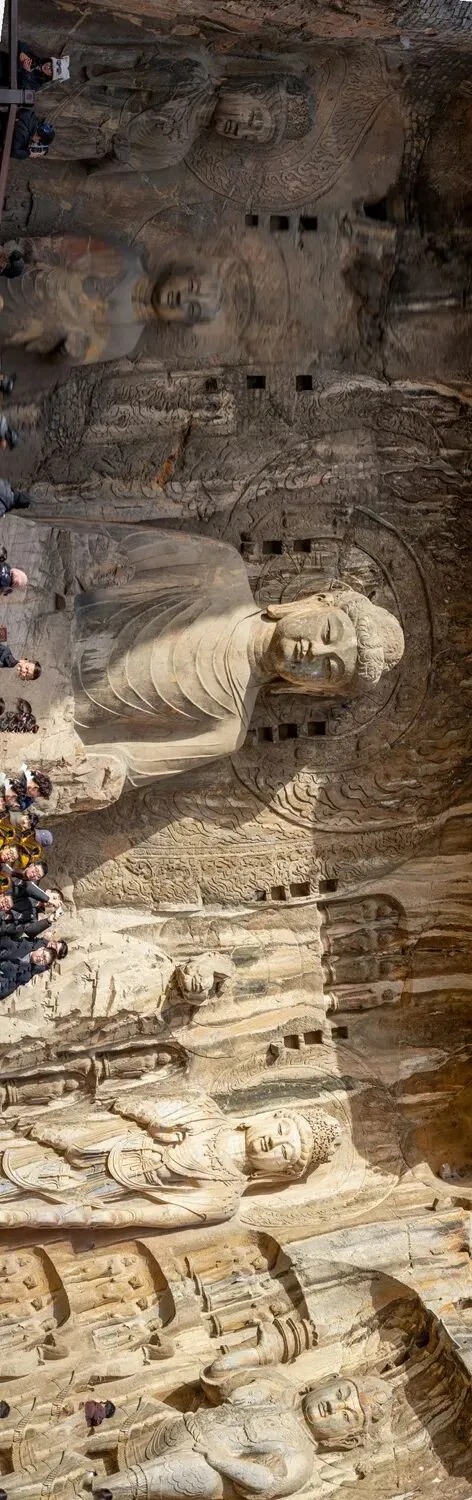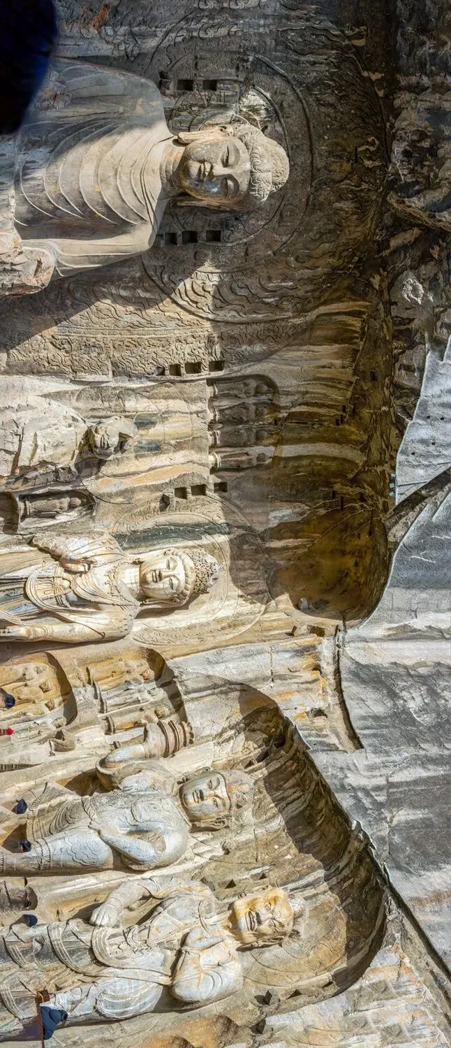 卢舍那大佛,据传是武则天根据自己的容貌仪态雕刻的佛像,乃龙门石窟中艺术水平最高、整体设计最严密、规模最大的一座造像,以神秘微笑著称,被国外游客誉为“东方蒙娜丽莎”、“世界最美雕像”。