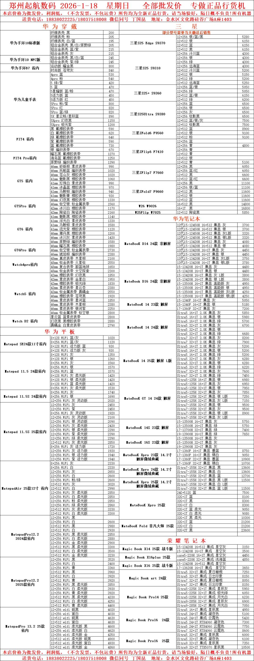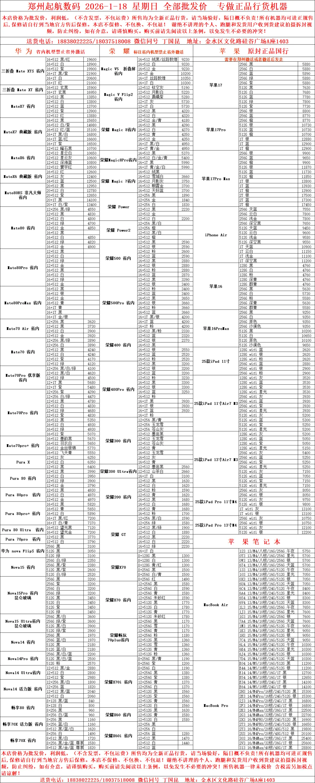 每天手机最新行情 请关注微信每日推送微信公众号:郑州起航数码公司地址:郑州市金水区文化路82号硅谷广场A座1403