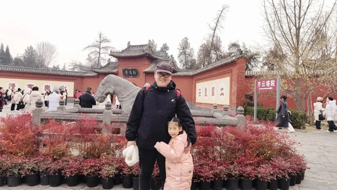 这次不只是一次简单的出行,而是陪伴爱人,回到他小时候奔跑过的土地——洛阳白马寺。孩子仰着头问:“爸爸,你小时候真的在这里长大吗?”他满眼笑意地点点头。这不再只是一次游览,而是一场穿越时光的重逢。