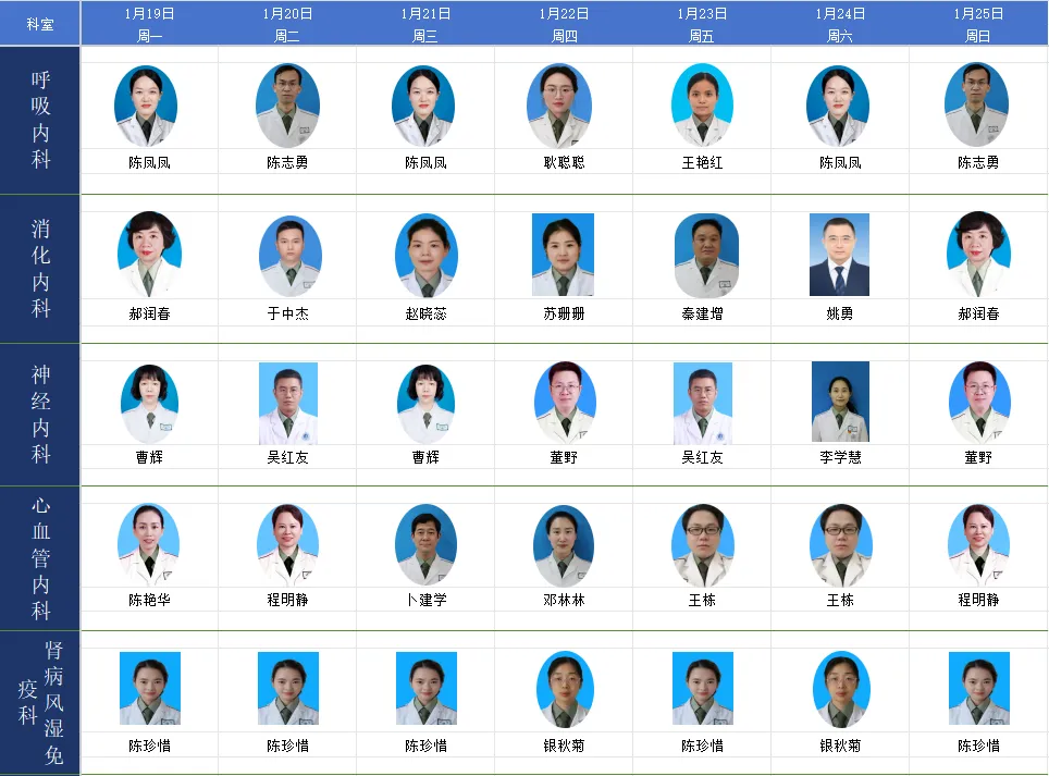 当前位置:首页>郑州>郑州四六〇医院1.19--1.25门诊医师坐诊表