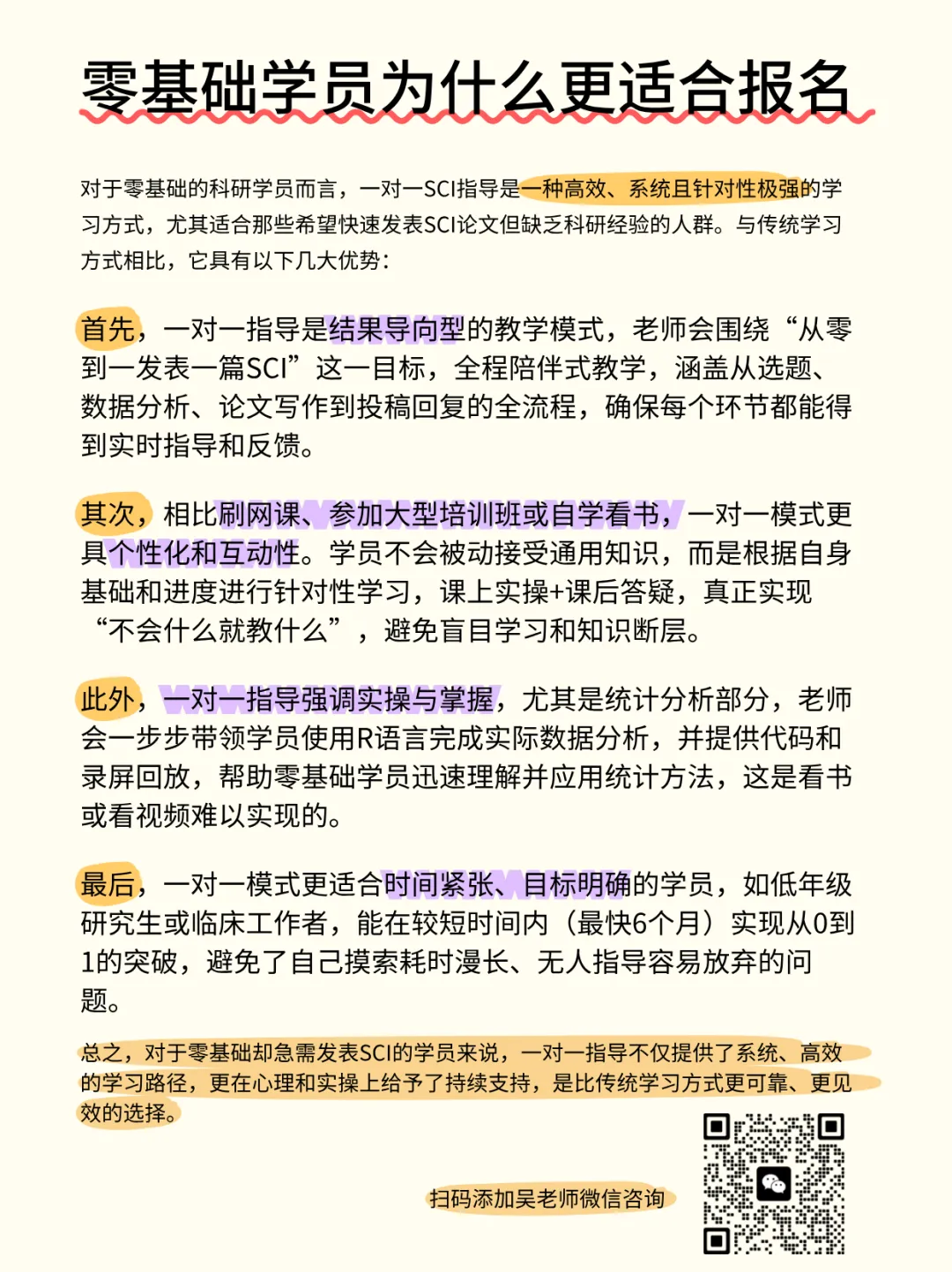 0基础临床数据发SCI!手把手教学!1对1全程教学指导报名流程!