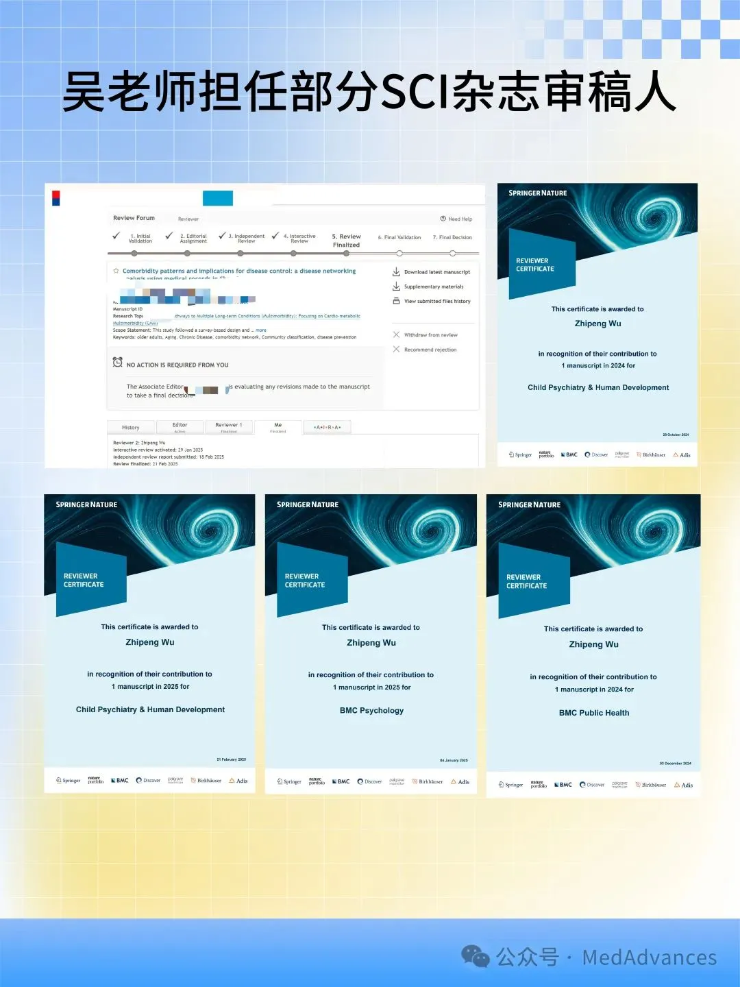 MedAdvances专注医护人员的临床科研教育与一对一个体化辅导,提供一对一SCI全程辅导,让科研小白几个月学会从0到1发表论文。常见公共数据库(NHANES/GBD/CHARLS/CLHLS等)和自有临床数据均可。