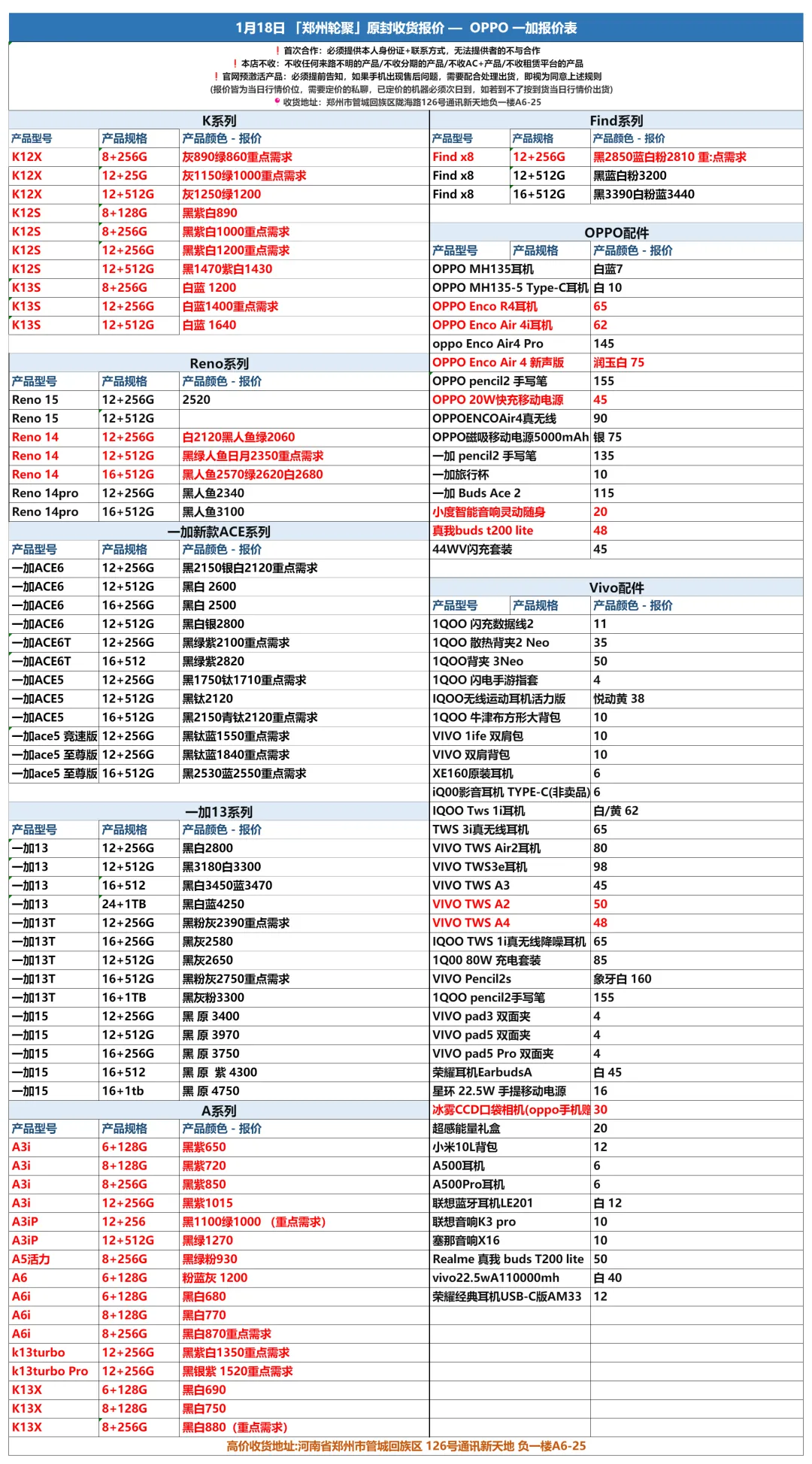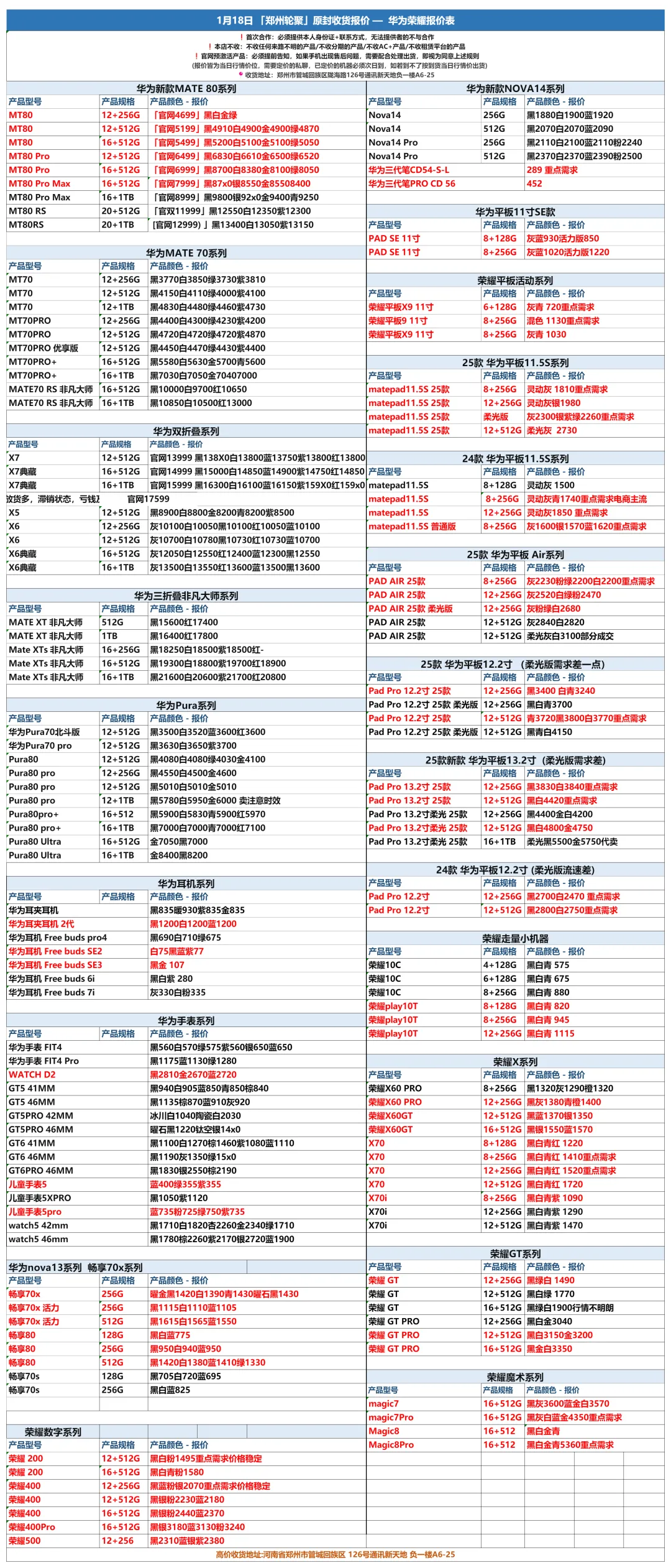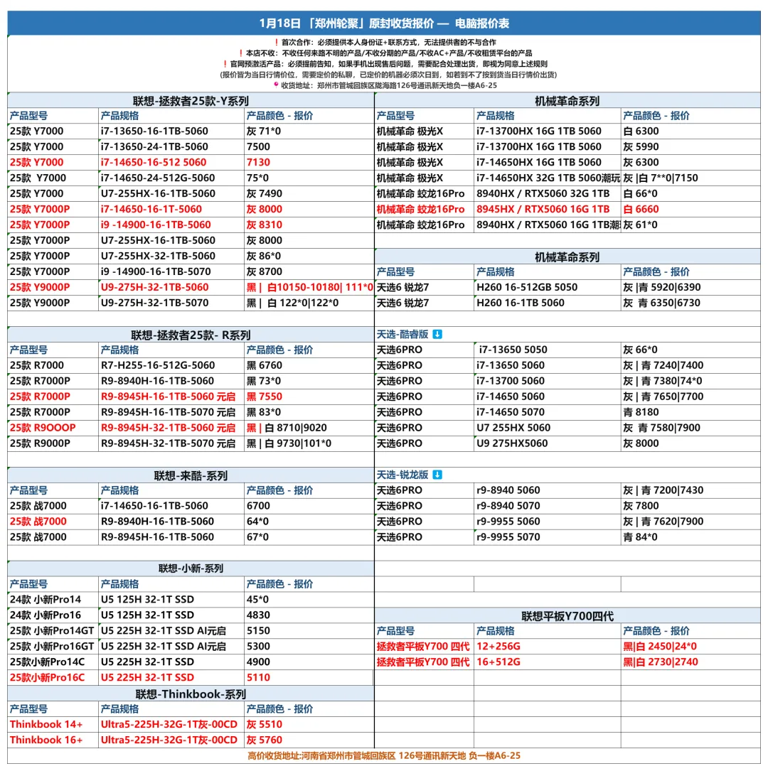 郑州轮聚通讯 2026年1.18日数码报价更新