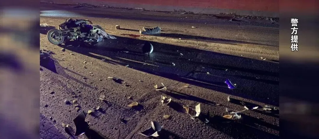 民警赶到现场后,发现有一辆电动车倒在地上,旁边散落着大量碎片。