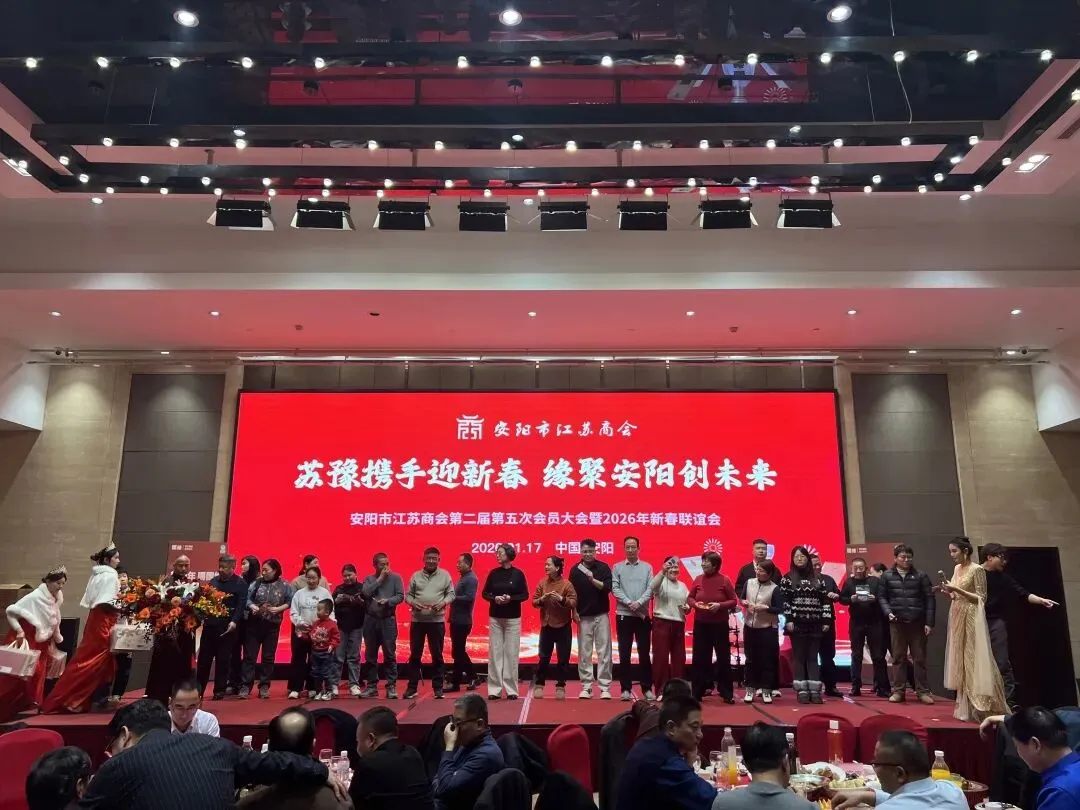 1月17日下午,安阳市江苏商会第二届第五次会员大会暨2026年新春联谊晚会顺利召开。