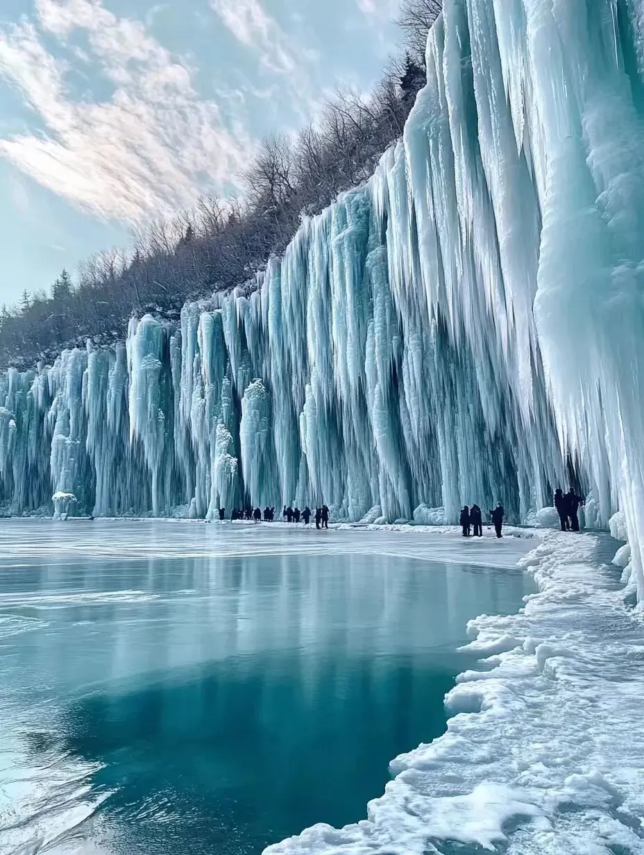 在林州太行山的深处,隐藏着一棵被誉为“冰雪世界中的璀璨明珠”的圣诞树冰挂。这棵高达140多米的天然冰挂,外形酷似冷杉。其“树干”上布满了蘑菇状的组织结构,为冬日增添了一抹别样的生机。每年冬天,这棵冰挂圣诞树都会在太行大峡谷的黑龙潭惊艳亮相,成为摄影爱好者的天堂。甚至连加拿大探险家威尔·加德都曾赞叹不已,称其为“世界最棒的冰壁”。