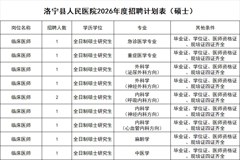 现场报名:应聘人员持以上相关资料到洛宁县人民医院新院区门诊楼5楼人事科报名;