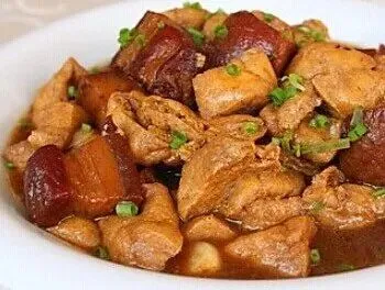 豆泡烧肉、牛肉炒藕丁、芹菜炒香干、凤凰玉米羹、黑芝麻米饭、每日坚果。