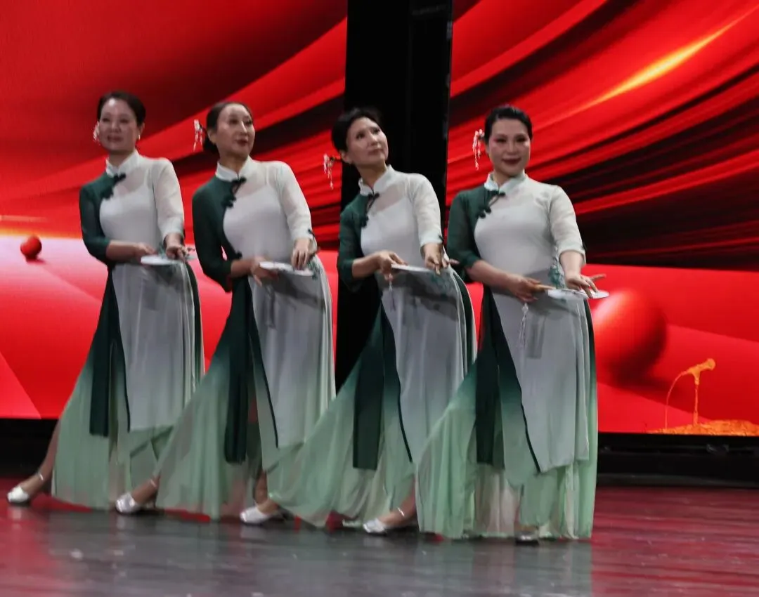 二、舞者:花甲之年,舞的是半生岁月深情 ,学员们优雅从容,她们有退休教师、医护工作者,也有曾经的机关干部。退休后她们选择在舞蹈中安放热情——程玉洁老师的排练室里,总有她们反复琢磨的身影:为一个转身角度细细推敲,认真领会曲目中的离别与思念,不舍与前行,岁月没有夺走她们的热爱,反而赋予了更深沉的理解与从容。她们舞的是自己的半生岁月: 是送别远行孩子时,在桥畔站到天黑的牵挂;是等待戍边爱人时,把思念缝进针脚的温柔;是经历挚友别离后,“海内存知己”的释然。 那些藏在团扇里的深情,早已刻进她们的生命:执扇手臂的起落,是思念的深浅;队形定格时团扇的高低错落,是人世的离合;眼神流转间团扇的在掌指间的翻转,是说不出口的惦念。兰花生于幽谷的清雅,恰如她们深藏心底的深情;刺绣针脚的细密,恰似穿越岁月未曾褪色的牵挂。 这一刻,体态不是衰老的标志,而是时光的勋章;年龄只是数字,艺术让她们永远年轻。