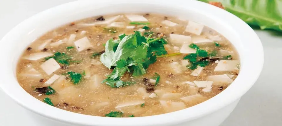 现磨花生豆腐汤(嫩豆腐110克,老豆腐75克,粉条15克,小白菜30克,花生10克)