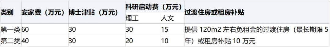 2.安家费在签订工作合同后一次性发放,博士后额外增加5万元。博士津贴分5年发放。