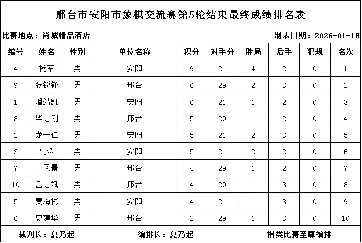 经过全天5轮25盘棋的激烈鏖战,安阳市代表队最终以场分6:4、局分29:21的战绩斩获胜利,邢台市代表队虽憾负赛场,却也展现了出顽强的拼搏精神。