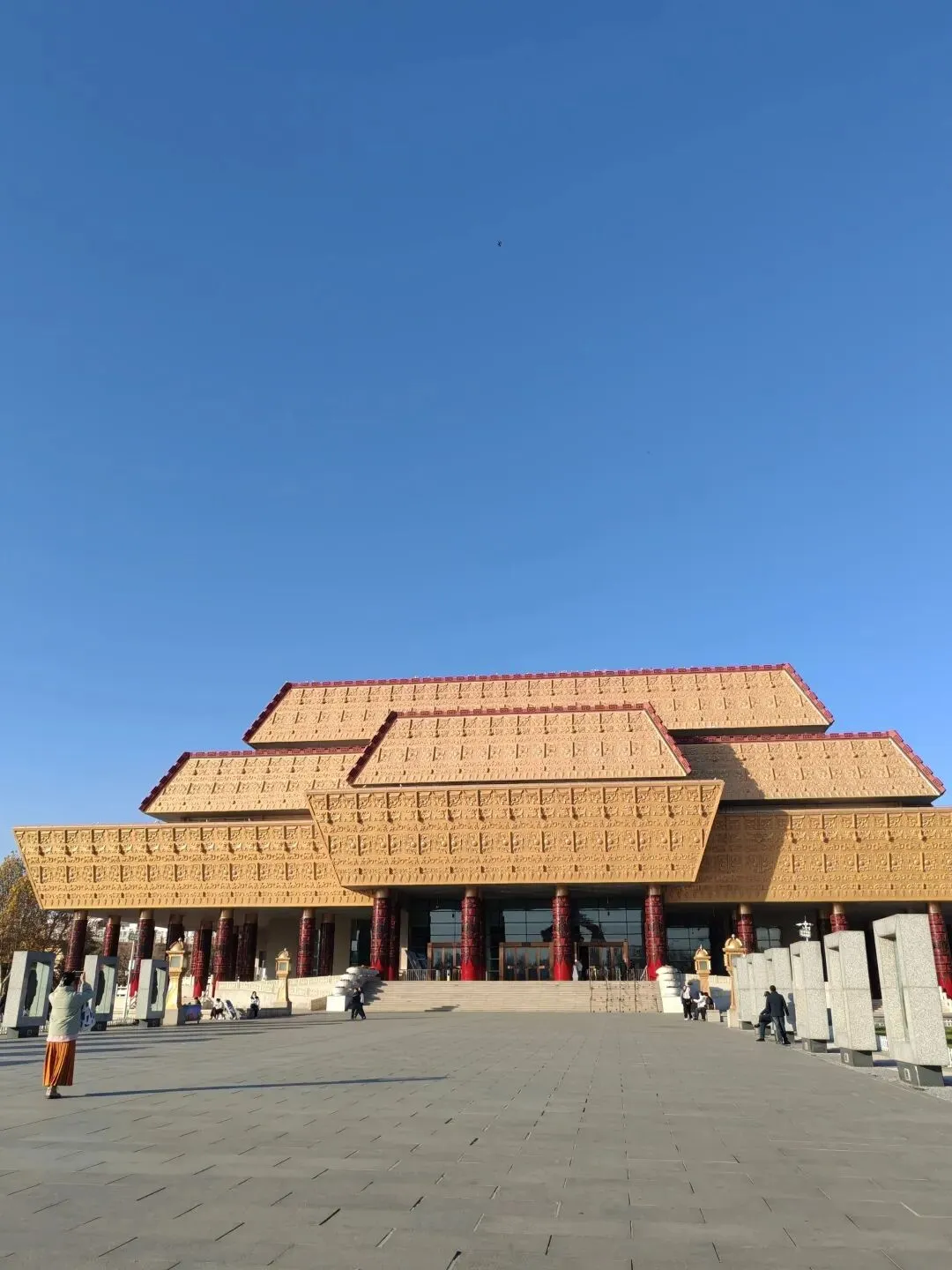 其建筑极具特色:入口18.8米高的字坊取金文“字”形,28片铜质甲骨碑林对应28星宿,三座主体馆俯视呈汉字“合”字,融传统与现代美学于一体。