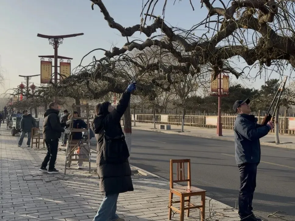 为强化实操能力,盘槐冬季修剪课程在殷墟路开展现场教学。授课人结合实地植株,详细阐释了盘槐冬季修剪的必要性及操作要点,让参训人员在掌握理论知识的同时,直观理解修剪技术的要领。培训课后,全体职工2人一组开展实操练习,严格按照修剪规范,先对植株树形整体观察研判,再精准实施修剪作业。经过一个多小时的精细操作,一棵棵盘槐焕发出整洁美观的崭新面貌。
